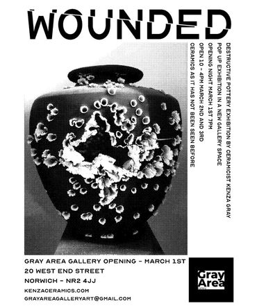 Wounded displayed Kenza Gray's shot series. What was seen on display was ceramics as it has never been seen before. Each piece is unique and can never be recreated.