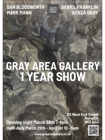 Celebration of the gallery's first year with this exhibition presenting our 4 represented artists : Dan Bloodworth, Daniel Franklin, Kenza Gray and Mark Mann